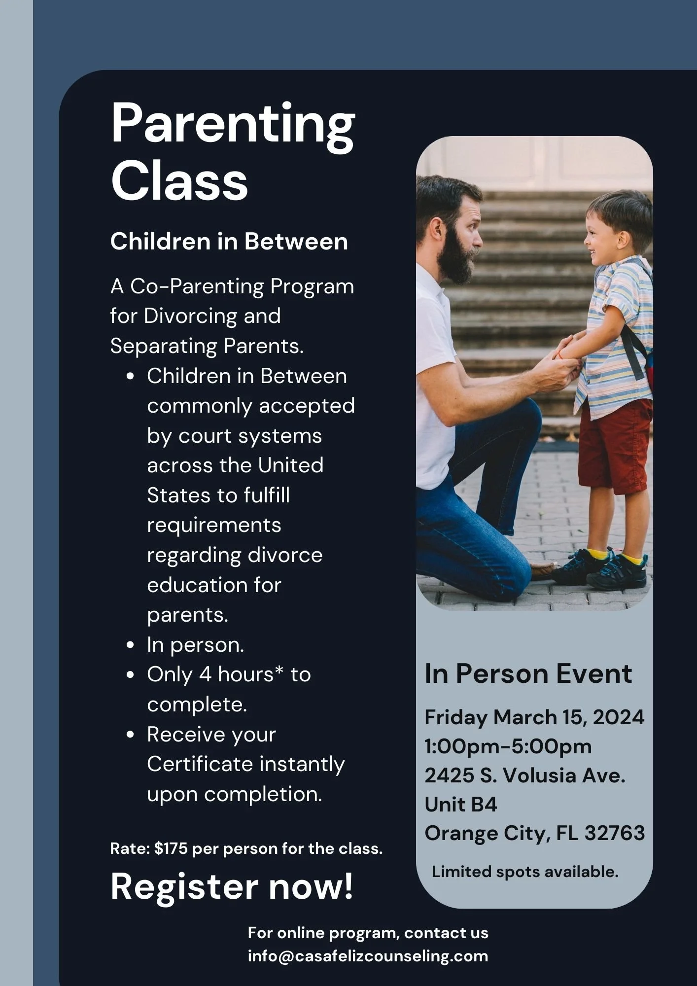 To Register call 321-578-7488 or email info@casafelizcounseling.com
